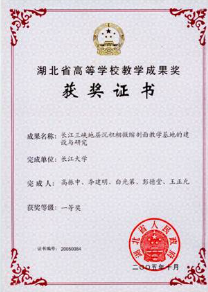 拥有“沉积岩石学”国家级一流本科课程(图10),“普通地质学”、“石油与天然气地质”等2门省级一流本科课程,1个国家级教学团队和2个省级教学团队。拥有国家级大学生校外实践教育基地(江汉油田实习基地)和湖北省油气勘探开发实验教学中心。另外,在河北秦皇岛、湖北松滋(图11)、大冶和通山设有4个野外地质实习基地,并在校内建设有三峡标本长廊、湖盆沉积模拟实验室和石油科技博物馆等校内实习基地,在中国石油、中国石化、中海油、美国俄克拉荷马州等建有本科生和研究生产学研合作培养实践基地。近年来,金碧
