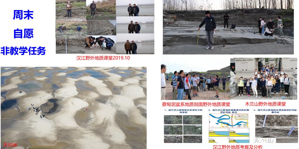 在蔡甸及其周边,如知音湖、汉江江滩、九真山、汉川采石场、汉阳锅顶山为观察点,开展科普基地扩展点建设。映射到现代湖泊、河流沉积,节理、断层和褶皱构造,同时还有古生物化石等地质学相关的地质现象,且距科普基地较近,单个科普点能够满足半天到一天的科普服务要求。 具体科普点如下: (1)已建立4个岩石观察点(图39):以知音湖、锅顶山为考察对象,建立碳酸盐岩观察的实习点;以九真山和汉江江滩为研究对象建立了碎屑岩及其地层发育特征观察的实习点。能满足公众对岩石基本类型及特征的识别,使其学会了解岩石类型。 (2)已建成5沉积观察点(图40-图41):以知音湖为考察对象,建立现代湖泊的沉积环境、沉积特征、沉积类型及成因等方面的总体认识,作为公众湖泊观察点;以汉江江滩为研究对象建立与河流相关内容结合的河流观察点。满足公众对沉积环境、沉积结构和沉积相分析的认识,让公众了解沉积环境、沉积结构和沉积相的相关知识。 (3)已建成4构造观察点(图42):以九真山为考察对象,建立节理、断层的几何学、运动学和动力学的总体认识,作为节理、断层观察点;以汉川采石场为研究对象,建立与褶皱相关内容观察点。满足公众对节理、褶皱和断层的观察分析需要,使公众了解相关构造的类型。 (4)已建成2个古生物观察点(图39、图43):以锅顶山为考察对象,建立古生物种群、生活环境、演化时代及古生物研究意义的总体认识,形成古生物观察点。满足公众在野外能看到古生物化石的需要,让公众了解古生物化石判断与形成过程。 依托蔡甸周边已建立的观察点,已为本校学生提供相关的课间野外实践服务,并多次接待社会各界领导、专家参观、指导。同时,增加了社会服务及社会公益等方面影响力,丰富了武汉市爱好人员地质知识。蔡甸周边地质观察点是“中国地层标本长廊”服务范围的有效拓展。 以下为已开展的相关活动记录。 蔡甸周边实践科普观察点 蔡甸周边、长江及汉江实践科普观察点 蔡甸周边、长江及汉江实践科普观察点 蔡甸周边科普实践观察点 蔡甸周边科普实践观察点立碑