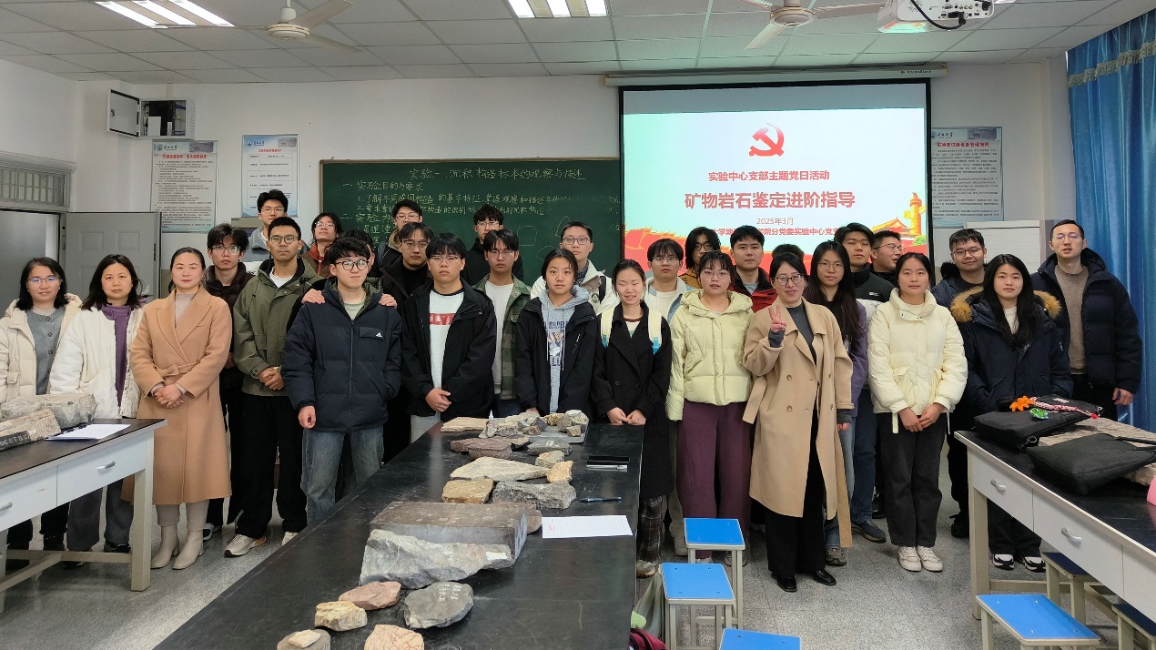 实验中心党支部别开生面地推出了“矿物岩石鉴定进阶指导”特色主题党日活动,为资源勘查工程与地质学专业的30余名高年级学子打造了一个沉浸式实践课堂。本次活动不仅构建了“理论-实践-创新”三维育人体系,更通过党建与业务的深度融合,将红色动能注入地质人才培养之中,探索出一条“三全育人”的新路径。