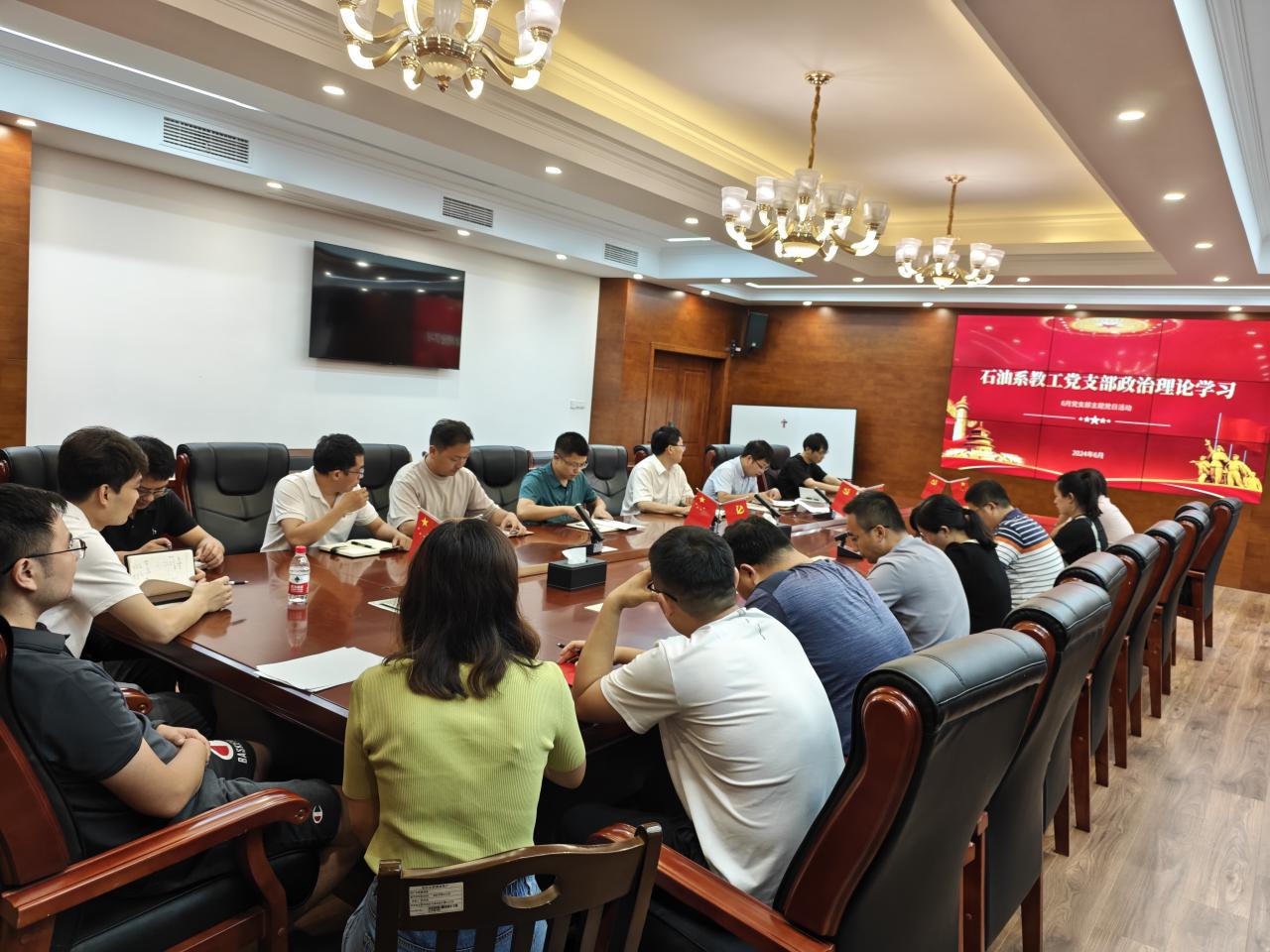 (通讯员陈鹏)2024年6月24日下午,在石油科技大楼C201会议室,院长朱光有同志为石油系教工党支部全体教师党员上了一堂纪律党课。结合支部党日主题“深化党纪学习教育,增强纪律意识,提高党性修养”开展,本次党课的目的是增强党员纪律意识,牢记教师使命。