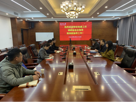 开展党建工作调研。院党委书记杨全辉、副书记冯舒、地质系党支部书记吕奇奇、院办主任张昊和金碧