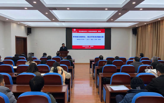 C301会议室给全体党员教师作了题为“贯彻新发展理念,推动金碧