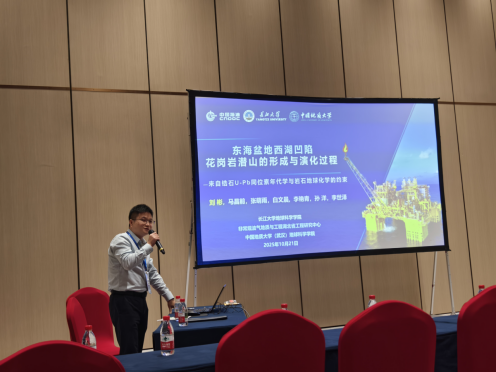在“花岗岩成因与大陆地壳演化”分会场,刘彬教授作题为《东海盆地西湖凹陷花岗岩潜山的形成与演化过程:来自锆石U-Pb同位素年代学与岩石地球化学的约束》的特邀报告。花岗岩潜山油气藏是全球重要的非常规油气资源之一,其发现突破了传统“油气主要赋存于沉积岩”的认知,但此类潜山的形成机制尚未完全明晰,严重制约着优质储层精准预测及油气藏勘探突破。刘彬教授以东海盆地西湖凹陷最新钻遇的花岗岩样品为对象,结合锆石U-Pb同位素年代学、岩石地球化学分析及地球物理综合解译,系统揭示了花岗岩潜山的成因机制,阐明了岩浆侵位、构造演化过程与油气成藏的潜在关联。该研究融合了火成岩岩石学、地球物理学与石油地质学等多学科研究技术与方法,为花岗岩潜山油气藏的勘探开发提供了重要的理论支撑,引发与会学者广泛关注与深入讨论。