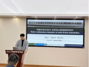 胡光明教授、魏思源特任副教授邀请,薛欣宇博士后于1月8日下午来院作学术报告。报告题目为《浅水湖盆风驱水体水动力—沉积动力数值模拟研究》,报告会在石油科技大楼C301举行,由胡光明教授主持。