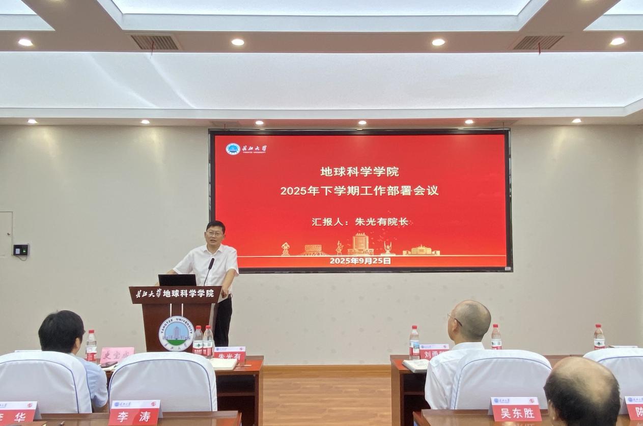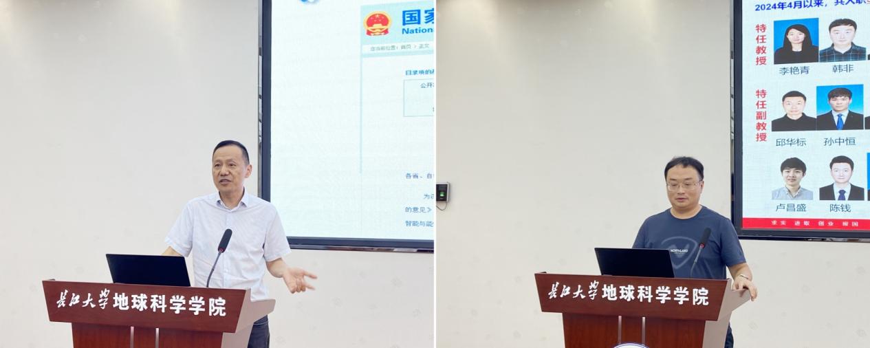 副院长胡忠贵对本科教学、科研工作、实验室管理及平台建设2025年上半年取得的成效进行了总结和通报,对资源勘查工程专业认证复评申报工作,实践教学改革,实践课程教学大纲修订,智慧课程持续建设,科研团队建设,基金申报组织动员,油田企业走访,教学实验室建设,科研仪器管理等方面的工作做了详细的安排。