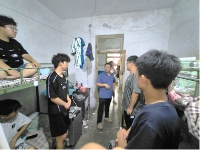 在金碧娱乐系主任刘彬,支部书记赵少卿等老师的陪同下,江山副院长首先走访了学生宿舍,与学生就住宿条件、生活习惯、实习收获等方面进行了深入交流。他寄语同学们要高度重视地质实习,锤炼扎实的野外地质技能,培养地质时空演化思维,将所学专业与国家重大战略需求相结合,努力奋斗。江山副院长还以自身1998年在柳江的实习经历劝勉同学们要把实习当作重要的实践锻炼,努力培养吃苦耐劳、乐观向上精神品质,为将来投身地质类相关工作或科研打下坚实基础。