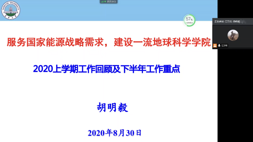 首先,胡院长向全体教职工传达了学校暑期研讨会议精神。介绍了长江大学“十四五”发展规划编制初稿的主要内容,传达了学校朱书记和冯校长在研讨会上的讲话精神,并简要说明了金碧 “十四五”发展规划的编制情况。