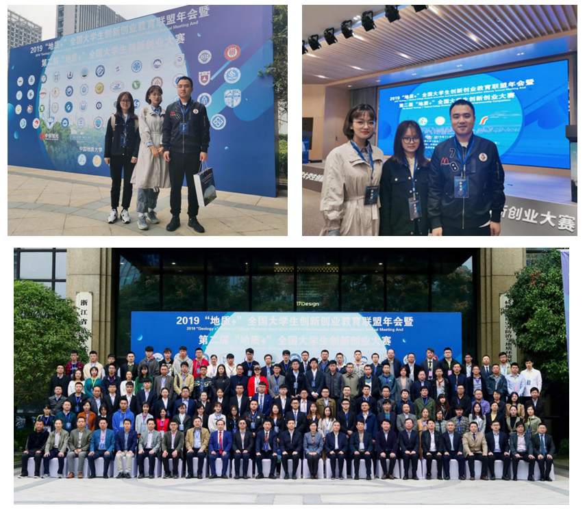 学生顾志翔、蒋蕾、陶叶一行三人赴杭州参加了由中国地质大学(武汉)和浙江省地质勘查局(浙江省第一地质大队)联合主办,浙江地质科创园发展有限公司承办的2019“地质+”全国大学生创新创业教育联盟年会暨第二届“地质+”全国大学生创新创业大赛。