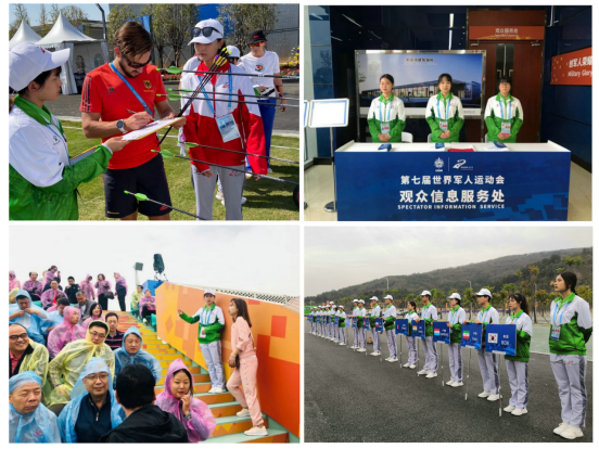 共派出2名带队老师和153名同学参加军运会志愿者的服务工作,每一位志愿者都有一个可爱的名字——“小水杉”。他们在蔡甸区国防射箭馆为第七届世界军人运动会射箭比赛提供志愿服务、保障赛事进程。在金碧娱乐场