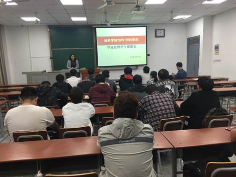 在武教-A106举行2019-2020学年学籍处理学生座谈会。会议由党委副书记任倩主持召开,参加会议的有龚文平副院长、辅导员潘志远,以及全体受学籍处理学生。