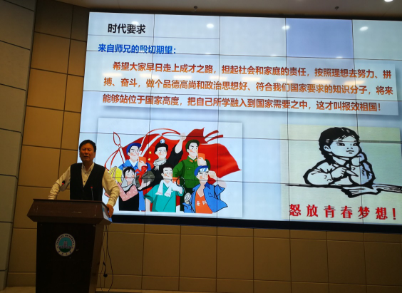 本次讲座的主题为“从大学到社会如何成熟思想”,刘玉强教授以一位老大学生的视角,分别从时代要求、学习方法、思想准备、工作态度、教育建议及事业与生活六个层面为到会师生开展了一场形式活泼、内容深刻的主题教育活动。