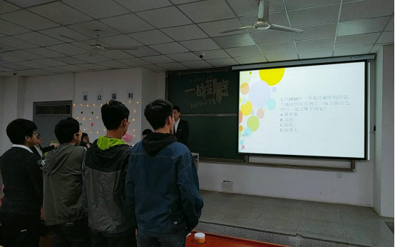 次活动参赛队伍多达29支,参赛选手突破百人,全部赛程包含初赛、复赛、积分赛、抢答赛、决赛五个环节,比赛内容涉及党团知识、时政方针、科技资讯、美食文化、天文地理、生活常识和学术经典18个知识领域在题库的设计时结合了“学习强国app”中当下时政热点巧妙构思题目,以竞答与游戏的新颖形式向同学们新知识。在比赛过程中,不仅对题库范围进行了创新,全新的比赛环节也同样引人注目。活动组引进了“复活卡”道具和“场外求助”环节,增了竞赛的趣味性与同学们的积极性。同学们在欢快的气氛中学习到了各类综合知识。