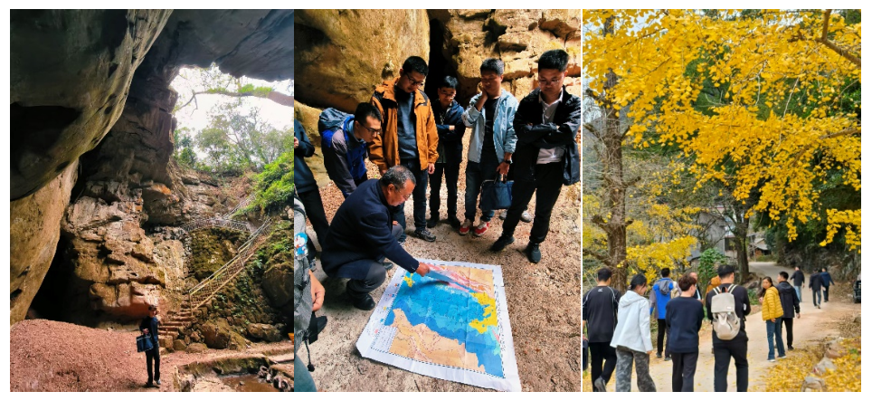 本次培训为期5天,内容涵盖学术报告、地质考察、野外勘探三大板块。12月5日-12月10日团队聆听了岩溶所概况及“十五五”科技创新合作规划、岩溶动力系统、万米深层油气地质理论等多场高水平报告,朱光有教授受邀分享万米深井钻探新发现,来自中科院的曾成老师向大家分享岩溶动力系统与水文地质实践工作,岩溶所水文地质专家易连兴教授实地教学并向我们带来西南岩溶地下河地质特征报告,广西区域地质行业专家李江老师围绕“台内找煤(铝)、滑脱带找气(金)、裂谷内找油(锰)”等关键议题展开深度研讨,岩溶所蒙彦研究员基于将今论古做了“岩溶塌陷形成演化模式及对油气成藏指示意义”的专题报告。