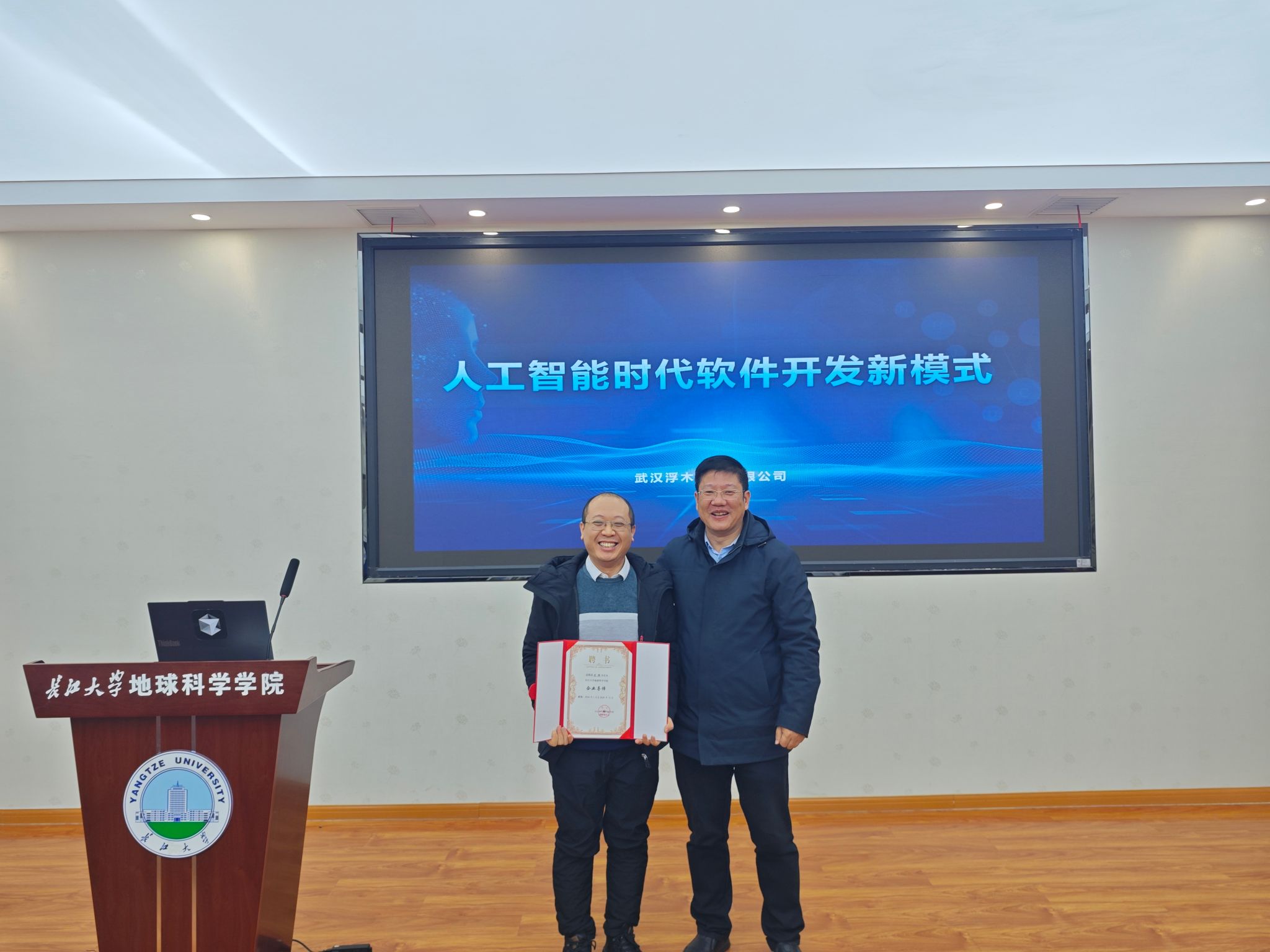 向武汉浮木科技有限公司技术专家颁发聘书,旨在通过引入产业界高水平专家,深化产学研合作,为地信专业的人才培养模式注入新动能。