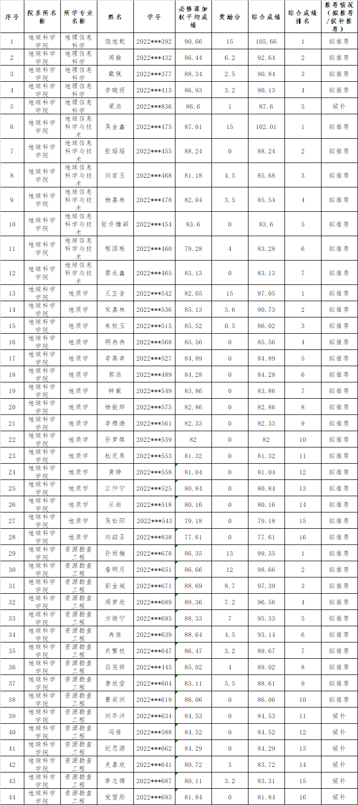 拟推荐2026届优秀本科毕业生免试攻读硕士学位研究生分专业按推免生名额的120%(其中20%为候补人员)进行公示。在公示期间,若拟推荐学生不符合条件或放弃推免资格,则依据候补人选的排名由候补人选依次递补,如没有递补学生的专业有学生不符合条件或放弃推免资格,则按本院推免名额分配方案要求进行递补。公示时间:2025年9月13日至2025年9月15日。