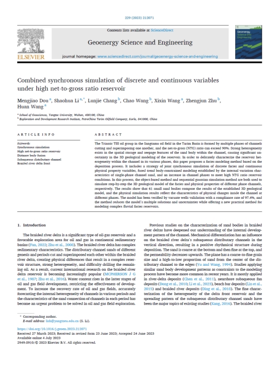 博士生窦梦皎在《Geoenergy Science and Engineering》上发表题为“Combined synchronous simulation of discrete and continuous variables under high net-to-gross ratio reservoir”的研究论文。金碧娱乐场