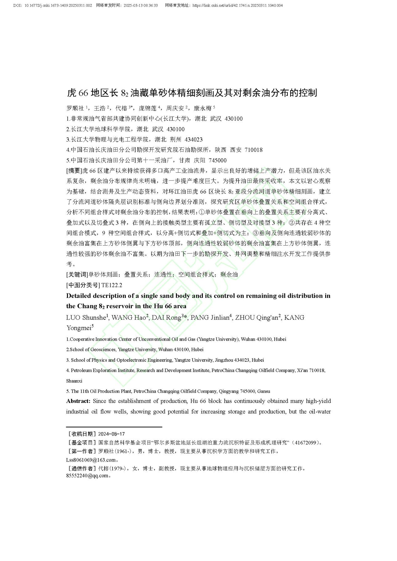 金碧娱乐场 硕士研究生王浩在《长江大学学报(自然科学版)》发表论文虎66地区长82油藏单砂体精细刻画及其对剩余油分布的控制