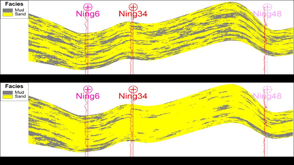 图2 概率面约束岩相对比剖面图