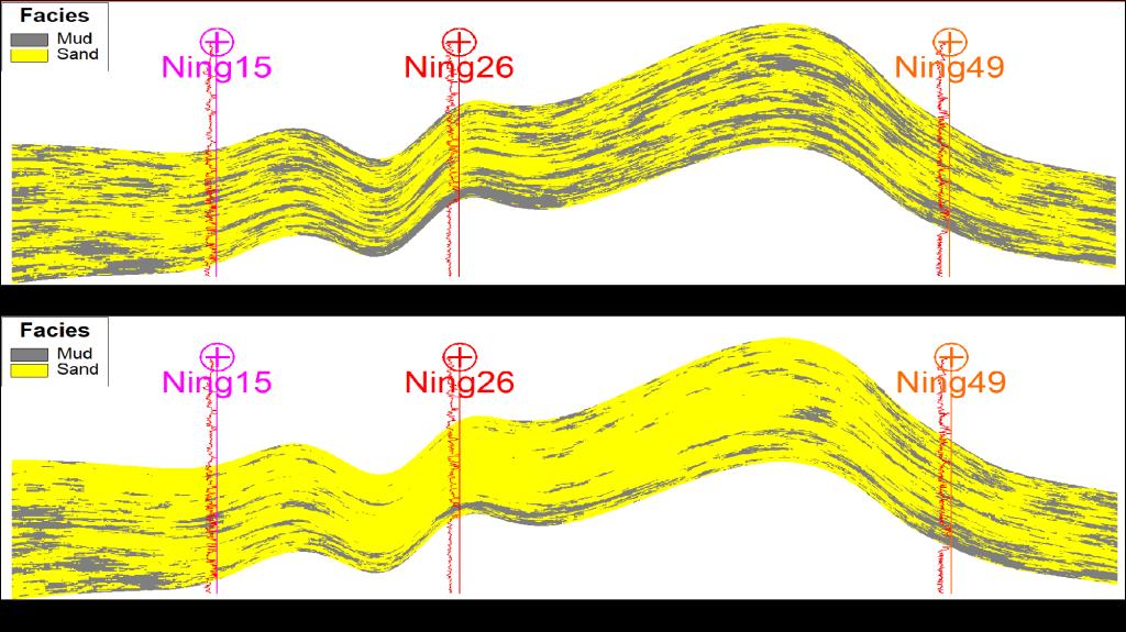 该研究选取鄂尔多斯岔地合水地区延长组7段页岩油藏为为研究对象,开展小层级别的地层对比,建立精细等时地层格架,利用petrel建模软件,综合运用了确定性建模和随机性建模相结合方式,以等时建模与相控建模的原则,根据砂泥岩厚度值与地层厚度值相比,得到地质概率面,并将其约束,得到概率面后约束岩相模型;按照序贯指示和序贯高斯随机性建模,建立了基于岩相模型和岩相控制的储层属性模型,提供了稳定可信赖的静态模型。建立的储层三维定量地质模型更准确地描述了各个岩相的空间分布特性,从而实现了利用精准的数据分析和模拟算法去揭示各类参数的宏观统计规律,使岩相建模从依赖于“数学实际”转向受制于多种地质条件的“地质实际”。系统整理长7段页岩油勘探及开发的核心技术,必将为国内页岩油的勘探与开发提供借鉴。