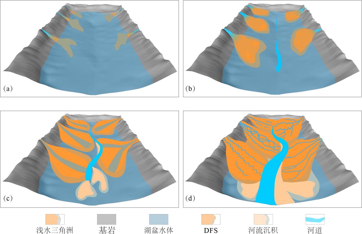 图1 狭长浅水湖盆沉积体系发育模式