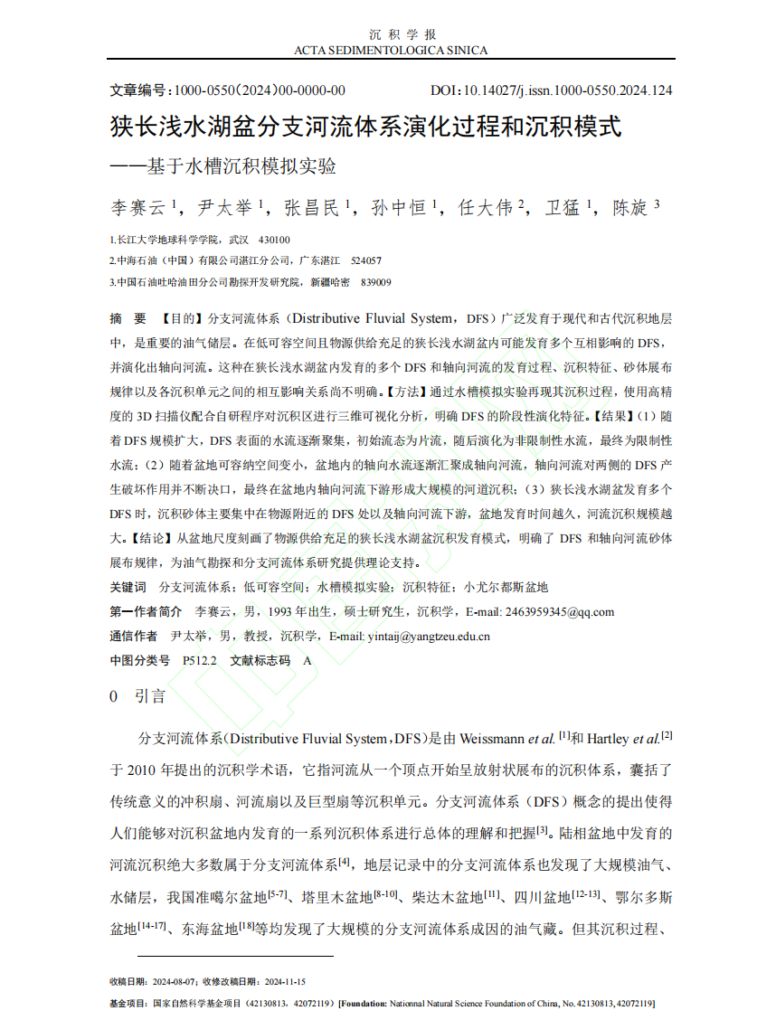 研究生李赛云在《沉积学报》上发表题为“狭长浅水湖盆分支河流体系演化过程和沉积模式——基于水槽沉积模拟实验”的研究论文。金碧娱乐场