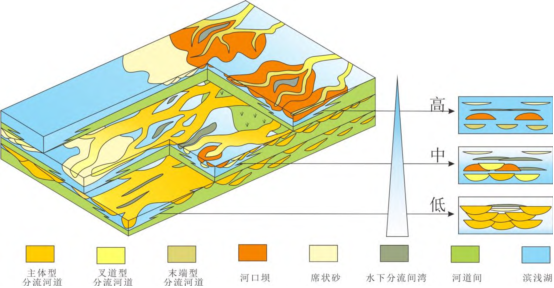 图1湖平面变化下的浅水三角洲前缘构型演化模式