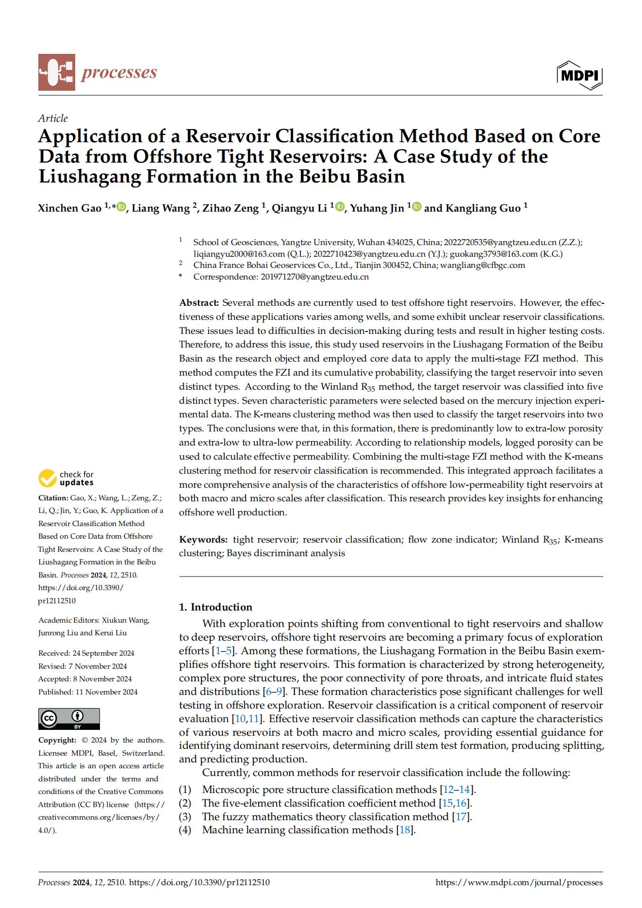 22级博士研究生在期刊《Processes》上发表题为“Application of a Reservoir Classification Method Based on CoreData from Offshore Tight Reservoirs: A Case Study of theLiushagang Formation in the Beibu Basin”的研究论文。金碧娱乐场