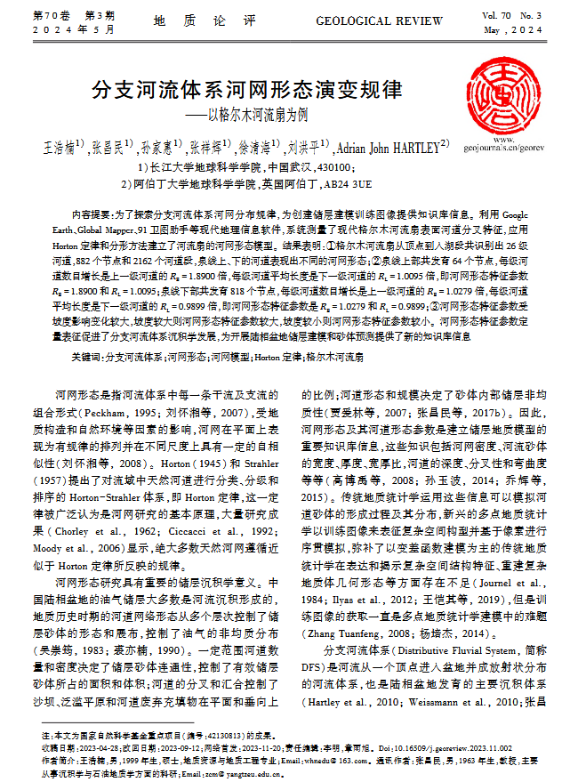硕士生王浩楠在中文核心期刊《地质论评》上发表题为“分支河流体系河网形态演变规律-以格尔木河流扇为例”的研究论文。金碧娱乐场