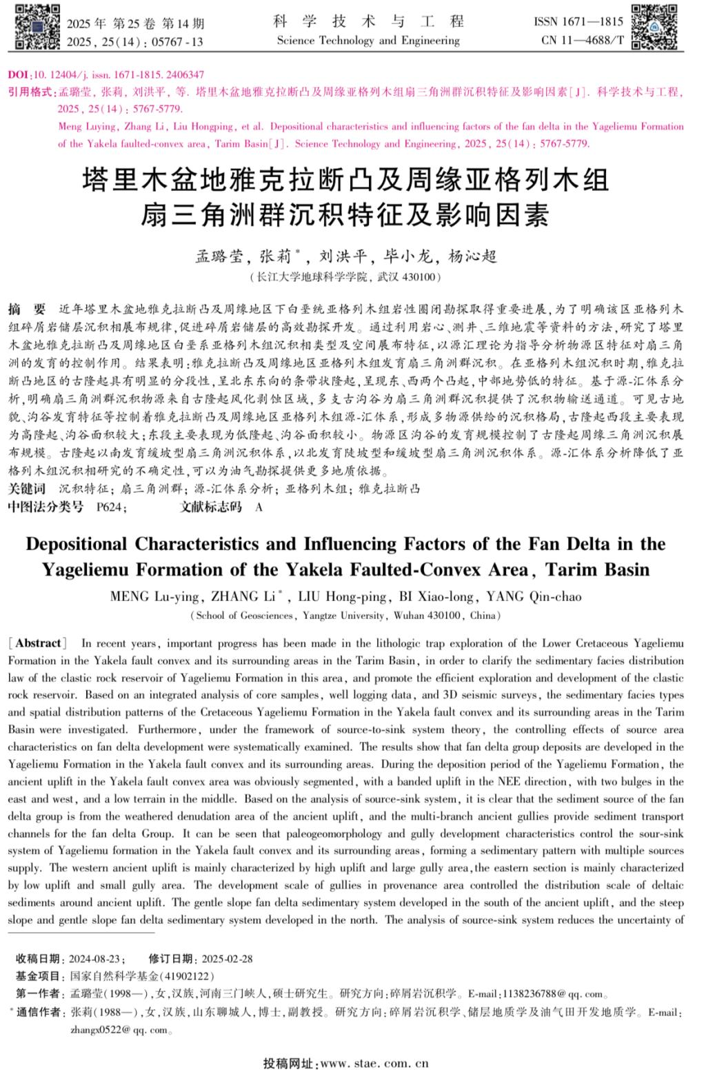 22级硕士研究生孟璐莹在期刊《科学技术与工程》上发表题为“塔里木盆地雅克拉断凸及周缘亚格列木组扇三角洲群沉积特征及影响因素”的研究论文。金碧娱乐场