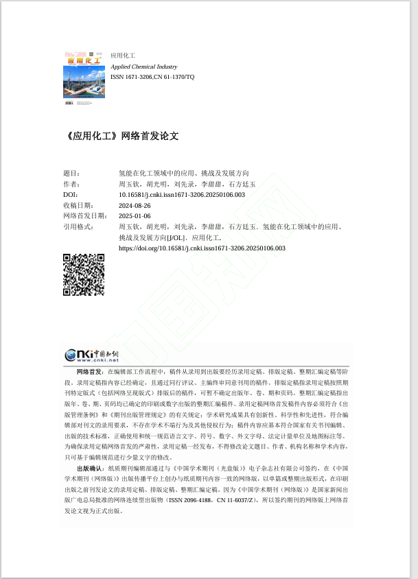 硕士生周玉钦在北大核心收录期刊《应用化工》上发表题为“氢能在化工领域中的应用、挑战及发展方向”的研究论文。金碧娱乐场