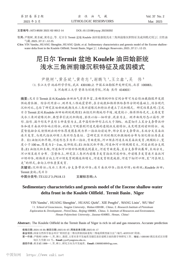 硕士研究生黄圣斌在期刊《岩性油气藏》上发表题为“尼日尔Termit盆地Koulele油田始新统浅水三角洲前缘沉积特征及成因模式”的研究论文。金碧娱乐场