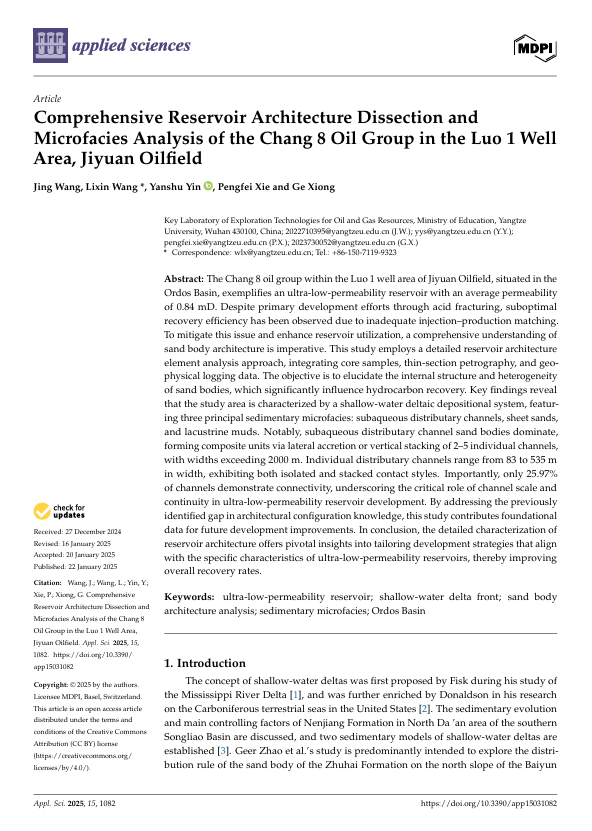 金碧娱乐场 硕士生王婧在SCI收录期刊《Applied Sciences》上发表题为“Comprehensive Reservoir Architecture Dissection and Microfacies Analysis of the Chang 8 Oil Group in the Luo 1 Well Area, Jiyuan Oilfield”的研究论文。金碧娱乐场 为论文第一署名单位,王立鑫老师为第一通讯作者。