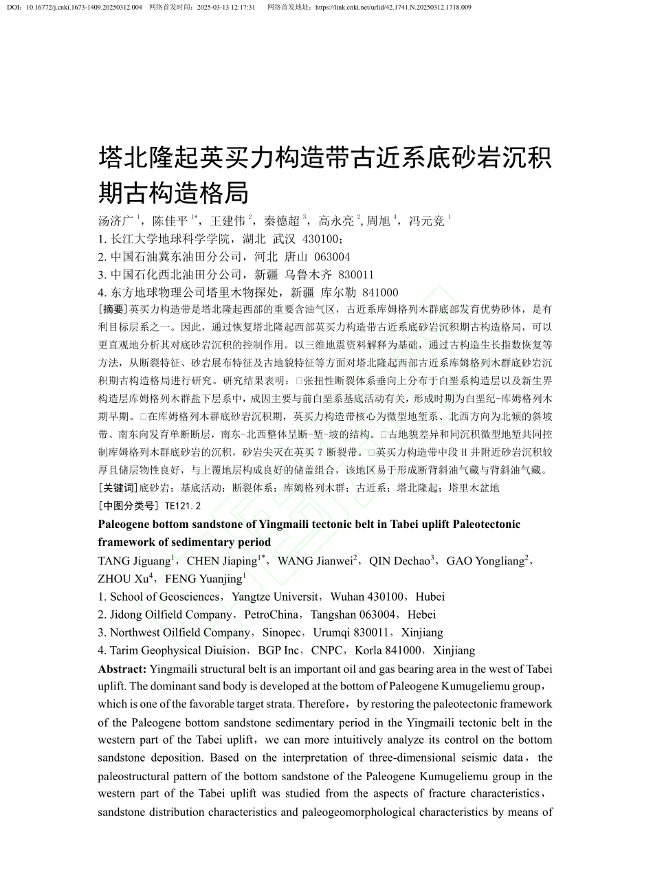 金碧娱乐场 汤济广教授团队长期从事盆地构造分析、油气构造解析与成藏、非常规油气资源评价等方面的教学与科研工作,团队硕士生陈佳平在长江大学学报(自然科学版)上发表题目为《塔北隆起英买力构造带古近系底砂岩沉积期古构造格局》的研究论文,金碧娱乐场 为论文第一署名单位,硕士生陈佳平与导师汤济广教授为论文的共同第一作者,本项研究得到国家自然科学基金资助。