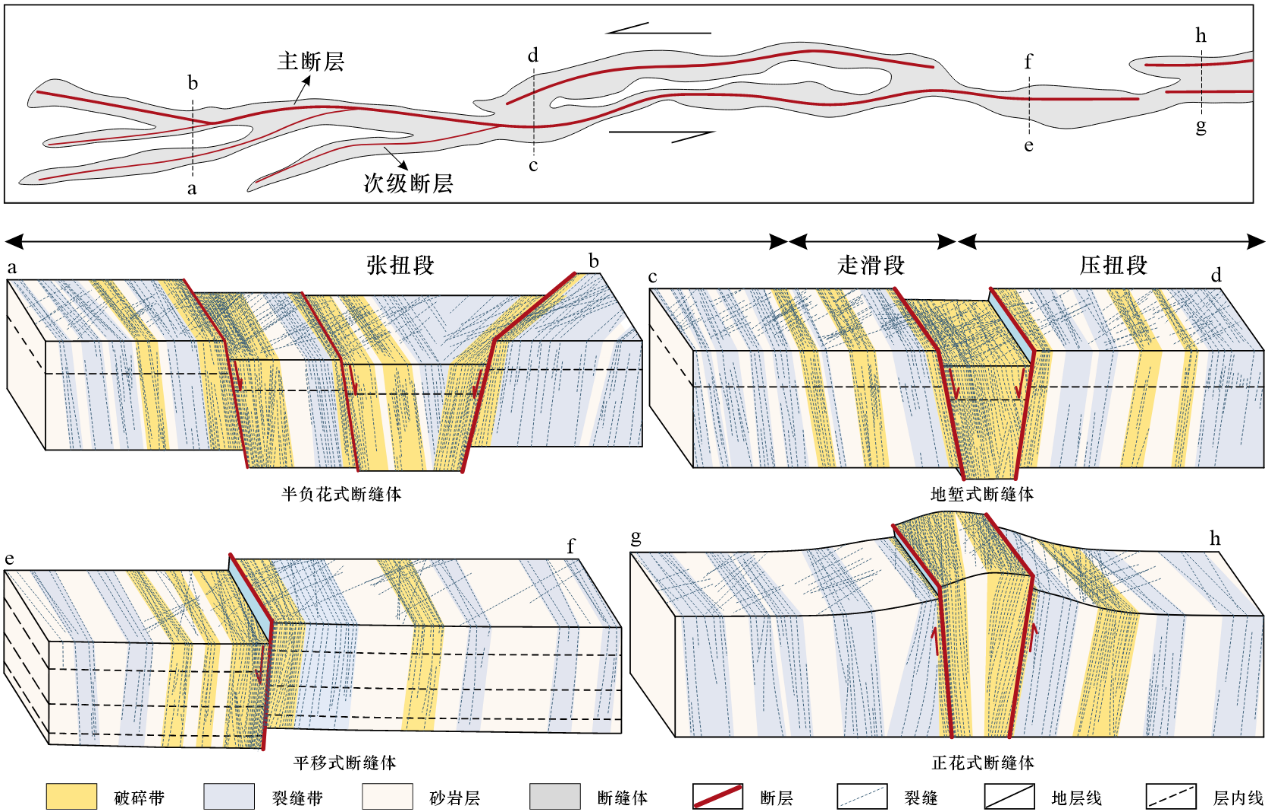 图4鄂尔多斯盆地旬邑地区断缝体发育模式图