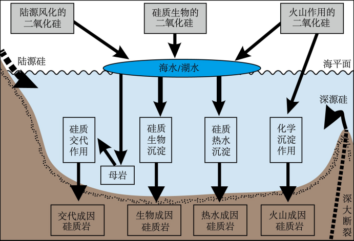 图2 硅质岩中不同硅质来源及成因类型