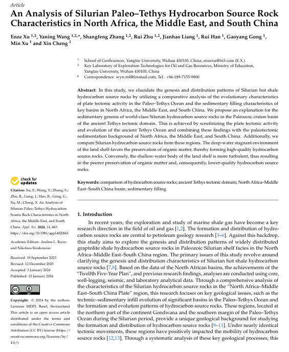 金碧娱乐场 博士生徐恩泽在Applied Sciences-Basel发表题为“An Analysis of Silurian Paleo–Tethys Hydrocarbon Source Rock Characteristics in North Africa, the Middle East, and South China”的研究论文,通讯作者为王雅宁副教授。