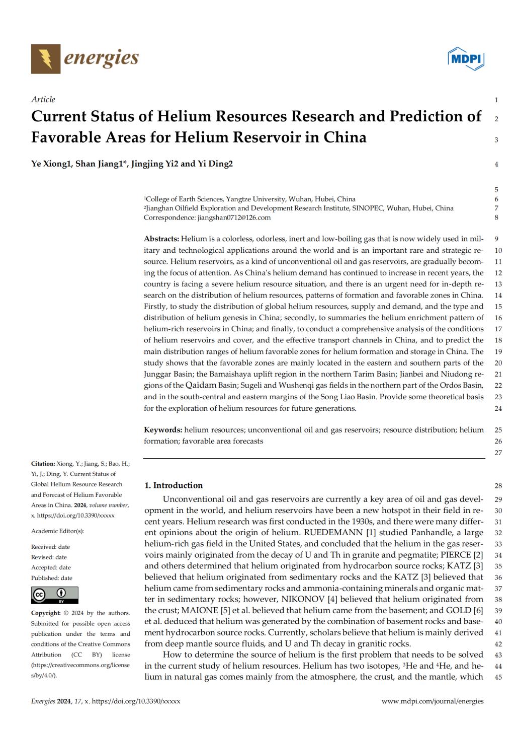 硕士生熊烨在《Energies》发表题为“Current Status of Helium Resources Research and Prediction ofFavorable Areas for Helium Reservoir in China”的研究论文。金碧娱乐场