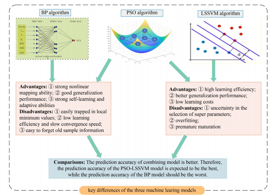 岩石的单轴抗压强度(UCS)是评价工程岩体力学性能和结构分类系统的关键指标。在实验室环境中确定UCS是最常用的方法,但该方法既昂贵又耗时。因此,可以使用基于几个简单实验室测试的间接测定方法来估算UCS,包括点荷载强度、岩石密度、纵波速度、巴西抗拉强度、施密特硬度和肖氏硬度。本研究中利用不同岩石类型的六组指标数据集,使用三种非线性组合模型(即反向传播(BP)、粒子群优化(PSO)和最小二乘支持向量机(LSSVM))预测UCS,并将预测结果与测量结果进行了比较。结果表明:PSO-LSSVM模型因其更高的性能容量而比其他两种模型更成功。六个数据集的预测UCS与测量UCS的比率分别为0.954、0.982、0.9911、0.9956、0.9995和0.993。当预测比率接近约1时,结果更合理。