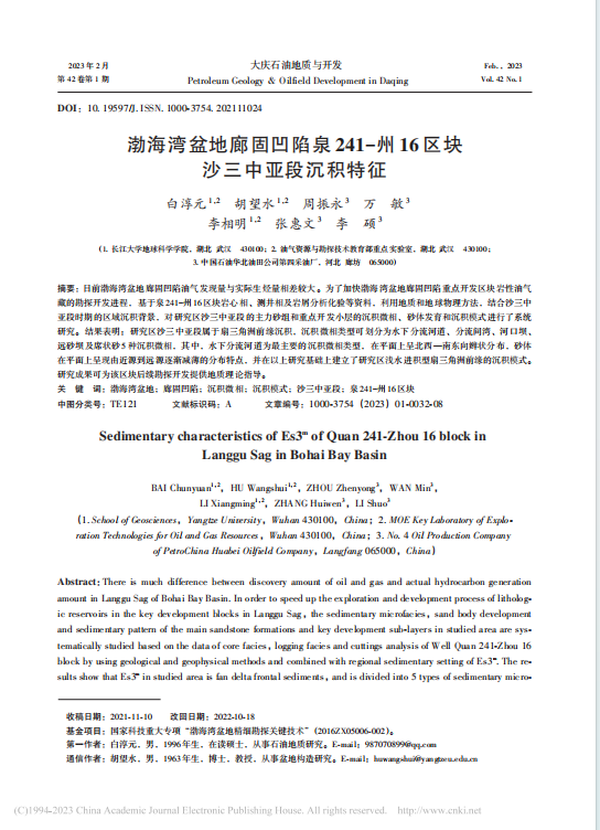 为论文第一署名单位,胡望水教授为通讯作者,本项研究得到国家科技重大专项“渤海湾盆地精细勘探关键技术资助。