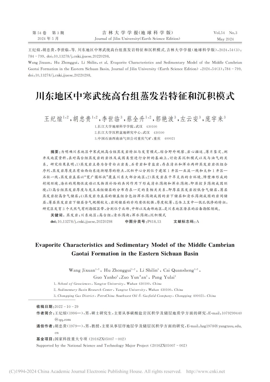 20级硕士研究生王纪煊在期刊《吉林大学学报(地球科学版)》上发表题为“川东地区中寒武统高台组蒸发岩特征和沉积模式”的研究论文。金碧娱乐场