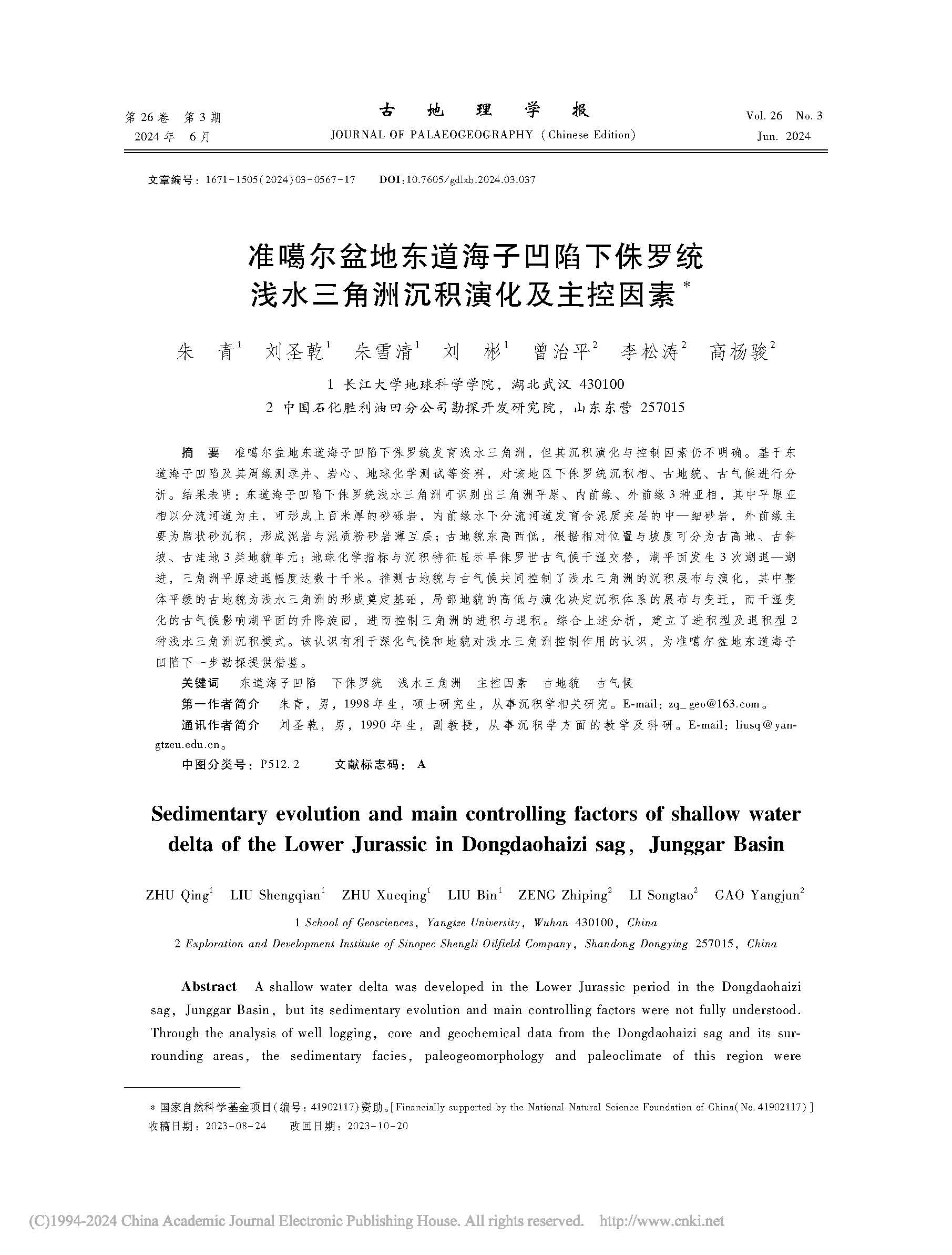 地质学专业22级硕士研究生朱青、朱雪清等在《古地理学报》上发表题为“准噶尔盆地东道海子凹陷下侏罗统浅水三角洲沉积演化及主控因素”的研究论文。金碧娱乐场