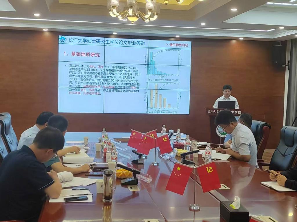 硕士研究生漆影强的硕士学位论文答辩在石油科技大楼C201顺利举行。答辩委员会由校内外专家组成,河南理工大学博士生导师郑德顺教授担任主席,长江大学饶松教授、胡光明教授、吕奇奇副教授及赵仲祥副教授担任委员,赵仲祥副教授兼任答辩秘书。