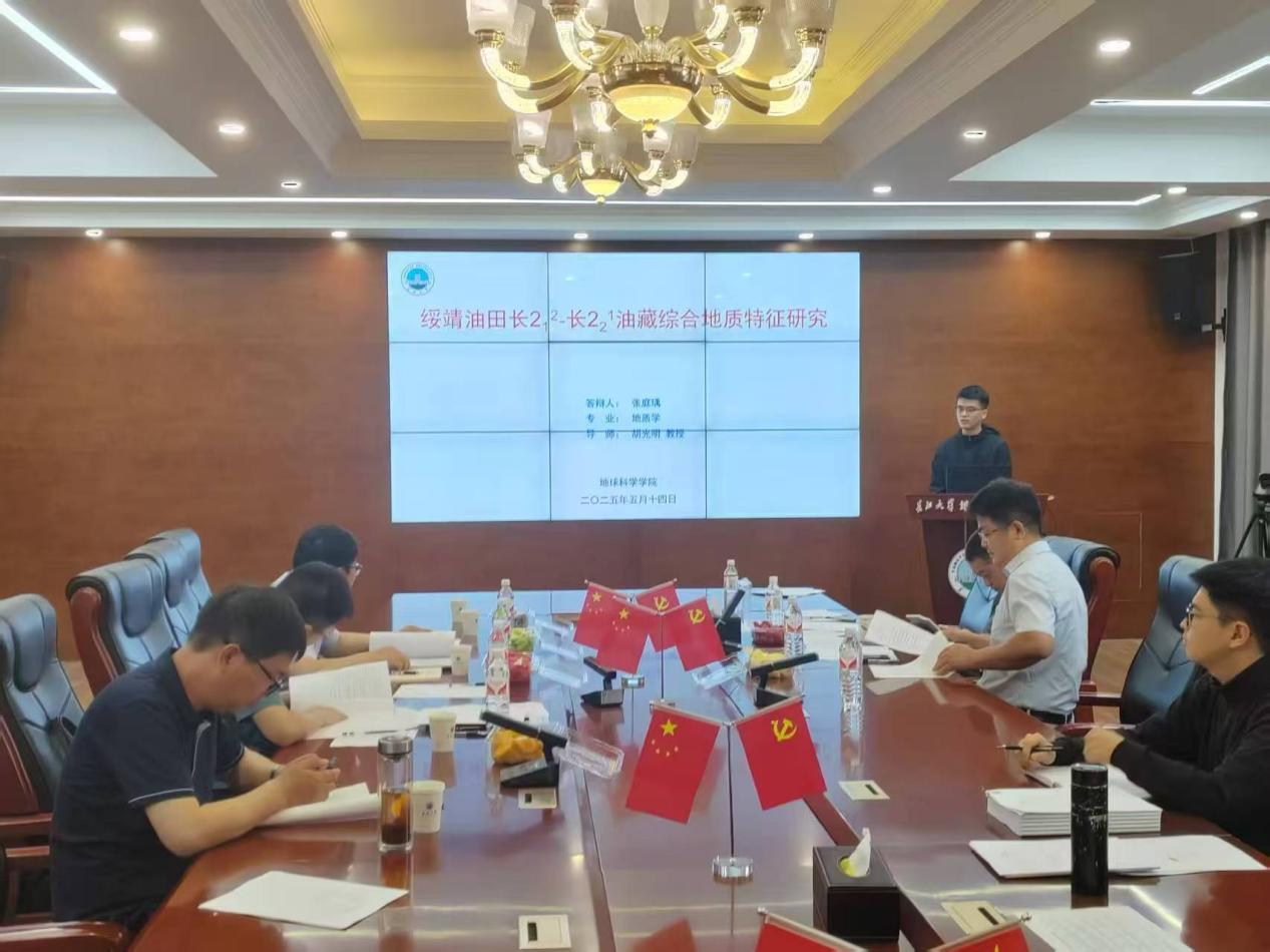 硕士研究生张庭瑀的学位论文答辩在石油科技大楼C201顺利举行。答辩委员会由校内外专家组成,其中河南理工大学博士生导师郑德顺教授担任主席,长江大学饶松教授、罗水亮副教授、吕奇奇副教授以及赵仲祥副教授担任委员,赵仲祥担任答辩秘书。