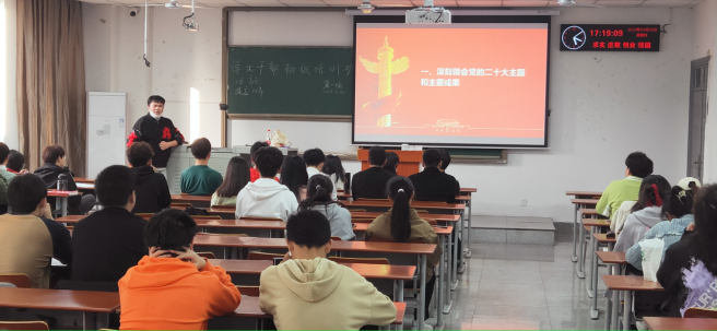 随后荆鑫老师介绍党的二十大主题和主要成果,学生干部们深刻认识过去五年党的工作和取得的成果。荆老师说到,学生干部是学生思想政治工作队伍的重要组成部分,是高校开展思想政治教育不可或缺的重要力量,举办学生干部初级培训班,充分体现了学校党委对学生干部队伍的高度重视,对各学生组织负责人的殷切期待。