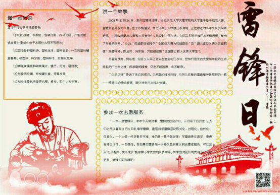 此次的学习雷锋活动,充分利用了学雷锋日和志愿服务日的号召力,唤起了同学们学习雷锋的意识,让同学们身体力行,人人参与,人人行动,让志愿服务精神和优良的生活作风成为生活习惯。