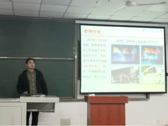 接着,为进一步提升学生安全防范意识,加强宿舍安全管理工作,张严老师面对全体班长进行了宿舍文明安全教育。首先,他对金碧娱乐场 前期宿舍安全检查情况进行了通报与总结,叮嘱同学们要注意用电安全,排查可能存在的安全隐患,杜绝使用任何违规电器。紧接着,张老师为大家讲解了宿舍火灾发生的原因、火灾的预防以及自救措施,强调学生应主动排查安全隐患,防范于未然,做到“我懂安全,我要安全,事事安全,人人安全”。
