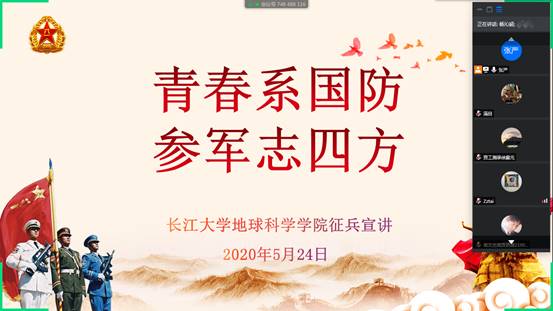 (通讯员 王铃淇)为鼓励金碧娱乐场 学生积极参与应征入伍,提高兵员征集质量,推进国防和军队现代化建设,金碧娱乐场 开展大学生入伍宣传工作,金碧娱乐场 于5月24日晚7时,在腾讯会议召开“青春系国防,参军志四方”征兵宣讲主题活动。此次会议由张严老师主持。