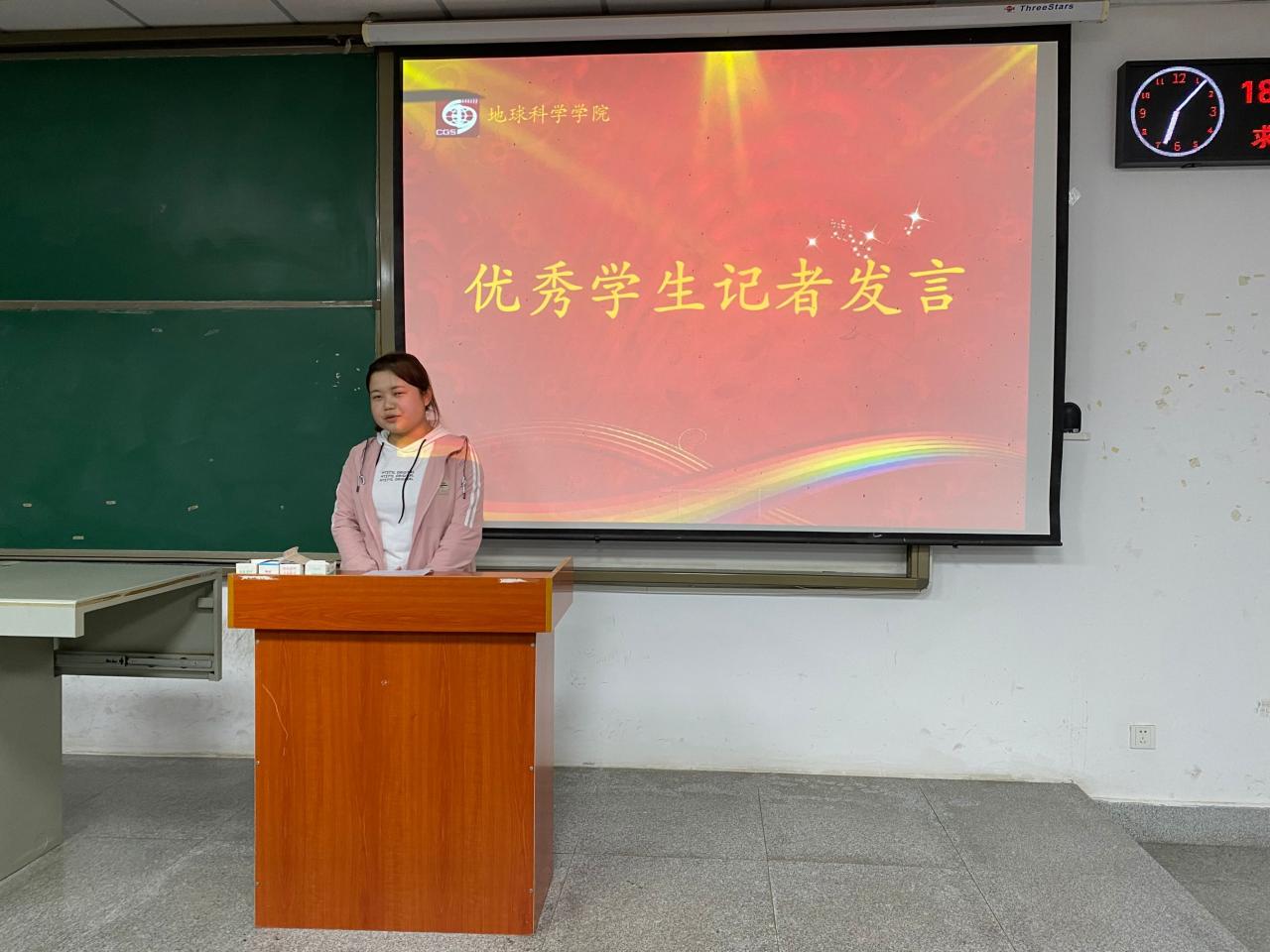 最后,郑娜学姐进行总结发言。郑娜学姐首先对获得表彰的学生记者及通讯员表示祝贺,接着对本学年的新闻工作表示肯定,对新闻的报道提出建议,“既要关心金碧 发展,也要关心国家大事,同时也要深入实际,写出更好的新闻作品。”还鼓励同学们在未来的学习与工作中,认真努力,尽职尽责并可以从中有所收获。