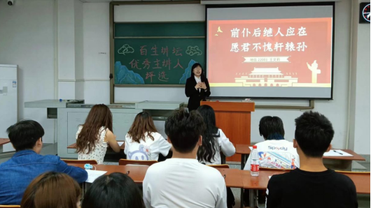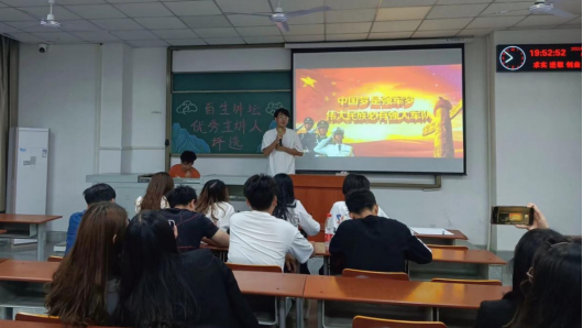 (通讯员 王铃淇)为进一步学习贯彻习近平新时代中国特色社会主义思想和庆祝建党一百周年,金碧娱乐场 于5月5日晚7时在A教306开展以“青春心向党,建功新时代”为主题的百生讲坛活动。此次活动由团委学生会主席郑娜主持,学生会全体部长参与此次活动。