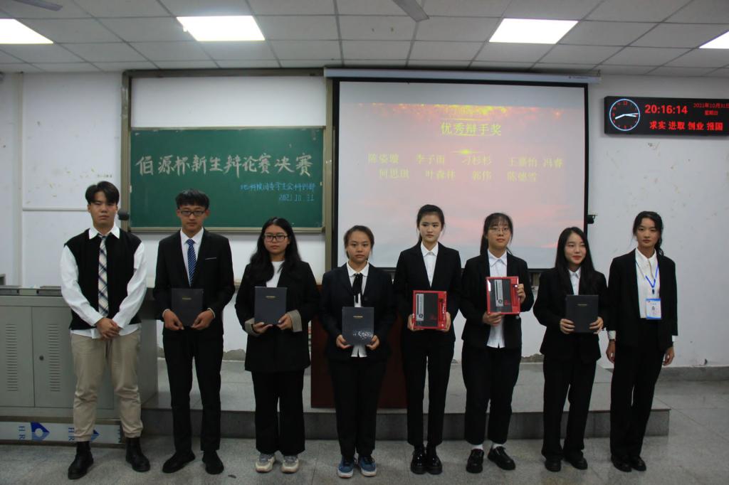 获得优秀辩手奖项的有:陈姿璇、李子雨、刁杉杉、王嘉怡、冯睿、何思琪、叶森林、郭伟、陈德雪。同时,获得第一届“佰源杯”新生辩论赛最佳辩手称号的同学是:资工22102班的陈德雪同学。